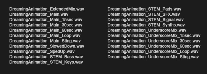 - Alternate Versions β shorter edits, no-drums, underscore, loops, and 15 / 30 / 60-second cuts.